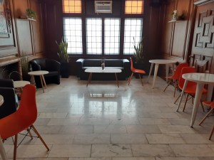 There is no seating. You can stand at the standing bar along the window to eat quickly or wait while they make your order. This tends to be a grab and go neighborhood, so that is fine with me. The Souper Market is also grab and go. I for one am happy the Cleveland Bagel Company is on the east side. I hope they can make a go of it here, because I like to support companies that value their employees enough to pay $15 an hour. Welcome to the neighborhood!