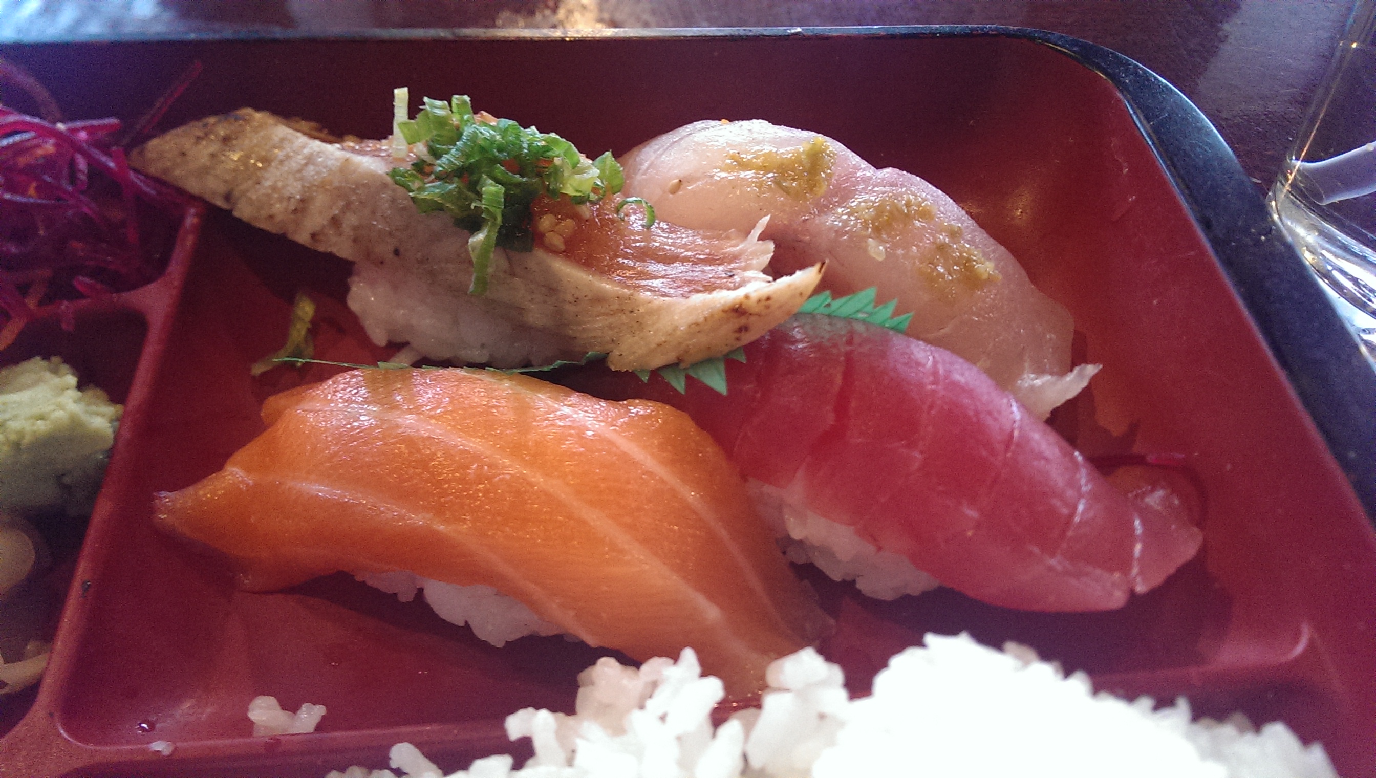 The beverage choices are still the same. There is a water pitcher on the counter for the more frugal folks among us, but you can buy real sugar Coke, Honest Tea, Diet Coke, Dr. Brown’s Root Beer, San Pellegrino