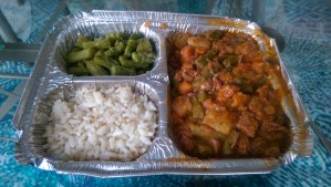 I have included some photos from today’s delivery, because I had a client who was not home. When that happens I am allowed to do whatever I see fit with the meals. I have been known in the past to give it to one of the homeless on Carnegie Avenue. I decided to eat it myself today (thanks Tax Day). The hot meal featured beef stew, rice and what I thought were beans but ended up being asparagus that was overcooked to an inch of its life (but still tasty). The beef stew was actually quite good. The cold meal is always a sandwich, a piece of fruit, a carton of milk, a dessert and some
