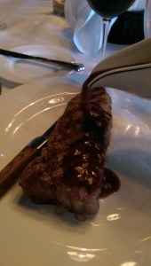 I decided to stick with a classic appetizer-entree-dessert on my first visit, so I tried not to fill up too much on any of the courses. I ordered the shrimp cocktail. The shrimp were plump and juice and averaged out to $3 a shrimp. The cocktail sauce had the perfect amount of horseradish bite to it. The presentation was also flawless.