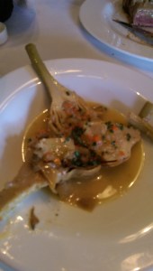 I was able to try a frog leg, which was absolutely delicious and perfectly prepared. They are pan-fried in butter and garlic. The meat fell from the tiny bones and were a huge hit with my friends who ordered them. The serving size is generous, so I could imagine ordering them to share or even as an entree.