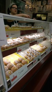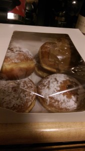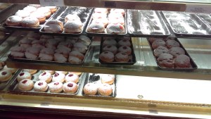 As I’ve said, Michael Angelo’s Bakery (not to be confused with Michaelangelo’s (the restaurant in Little Italy) or Michael Angelo’s Winery) is my go-to bakery for pączki (pronounced poonch-kee). For those who don’t know, pączki are made from especially rich dough containing eggs, fats, sugar, yeast and sometimes milk in the month or two before Lent (but definitely on both Fat Tuesday and Fat Thursday). They feature a variety of fruit and cream fillings and can be glazed, or covered with granulated or powdered sugar. Michael Angelo’s pączki are generously stuffed with filling and are light and airy while also being heavy in weight. It is a must-visit for me every pączki season. I go during the day during the week, but you have to get there early before they run out (or you will be stuck with prune) – or order them ahead of time. The lines are long during pączki season – especially on the weekends. If they run out of a certain flavor and they still have the pastries they will run and fill them for you. But once they are out they are out.