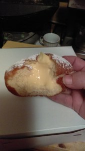 Colozza’s Bakery onRidge Road in Parma wins the award for most unique flavors. The classic Italian bakery takes on a Polish accent in February. Colozza’s mixes in new and traditional flavors in their dozen annual paczki offerings, from lemon and apricot to peanut butter banana fudge, butterscotch, and cannoli. They discontinued prune and poppyseed, but might be able to make them if ordered. The minute I heard they had a butterscotch paczki I headed there. The paczki were good, but not as good as Michael Angelo’s. The dough was a little drier, and as you can see in the photo to the right it wasn’t as filled with filling. But hey, butterscotch…