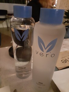 Once sat we were offered still or sparkling water. I chose sparkling, which my friend who does not like still table water in restaurants happily shared with me. The water is served in recycled glass containers of 5x distilled sparkling or still water.