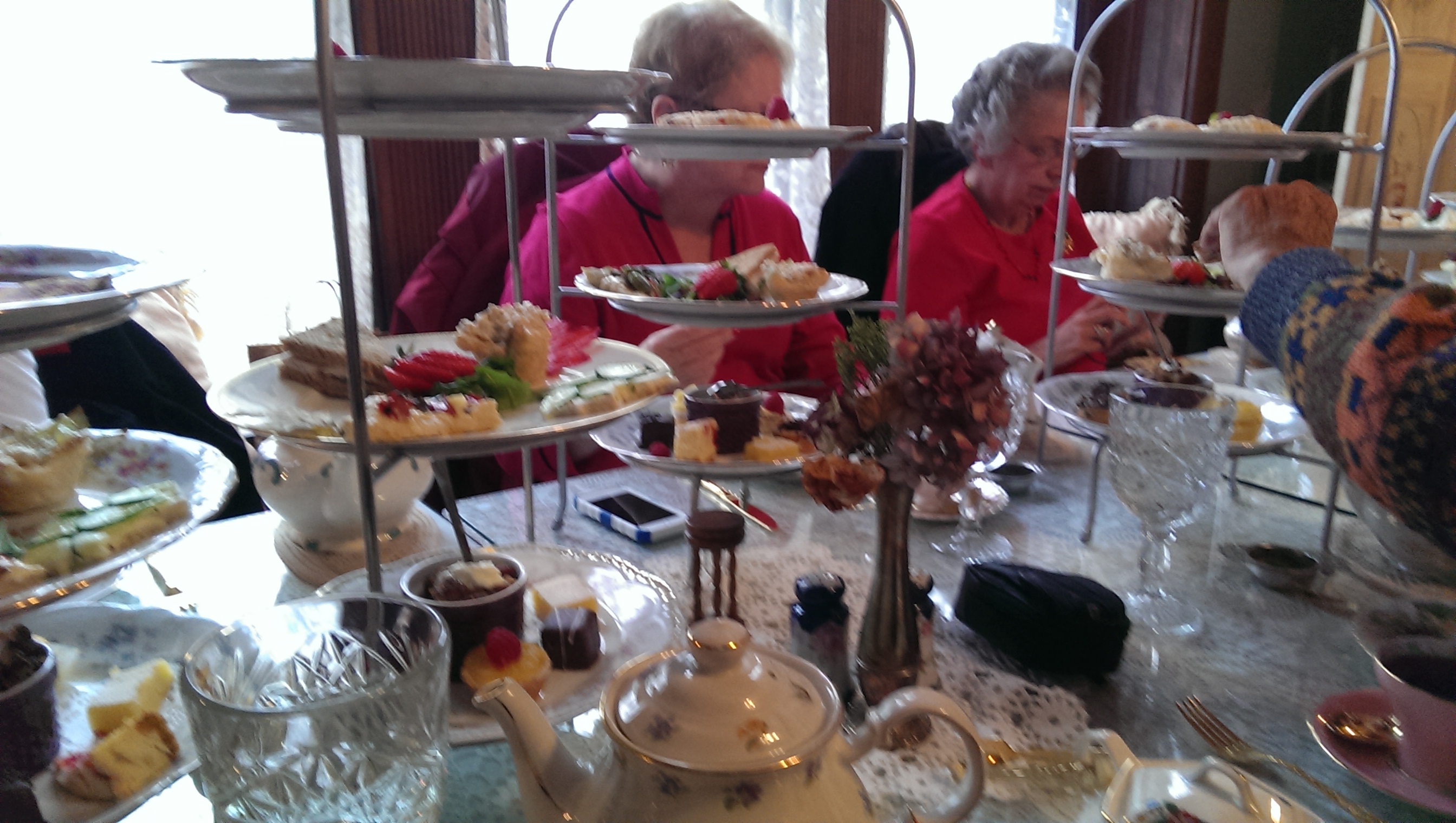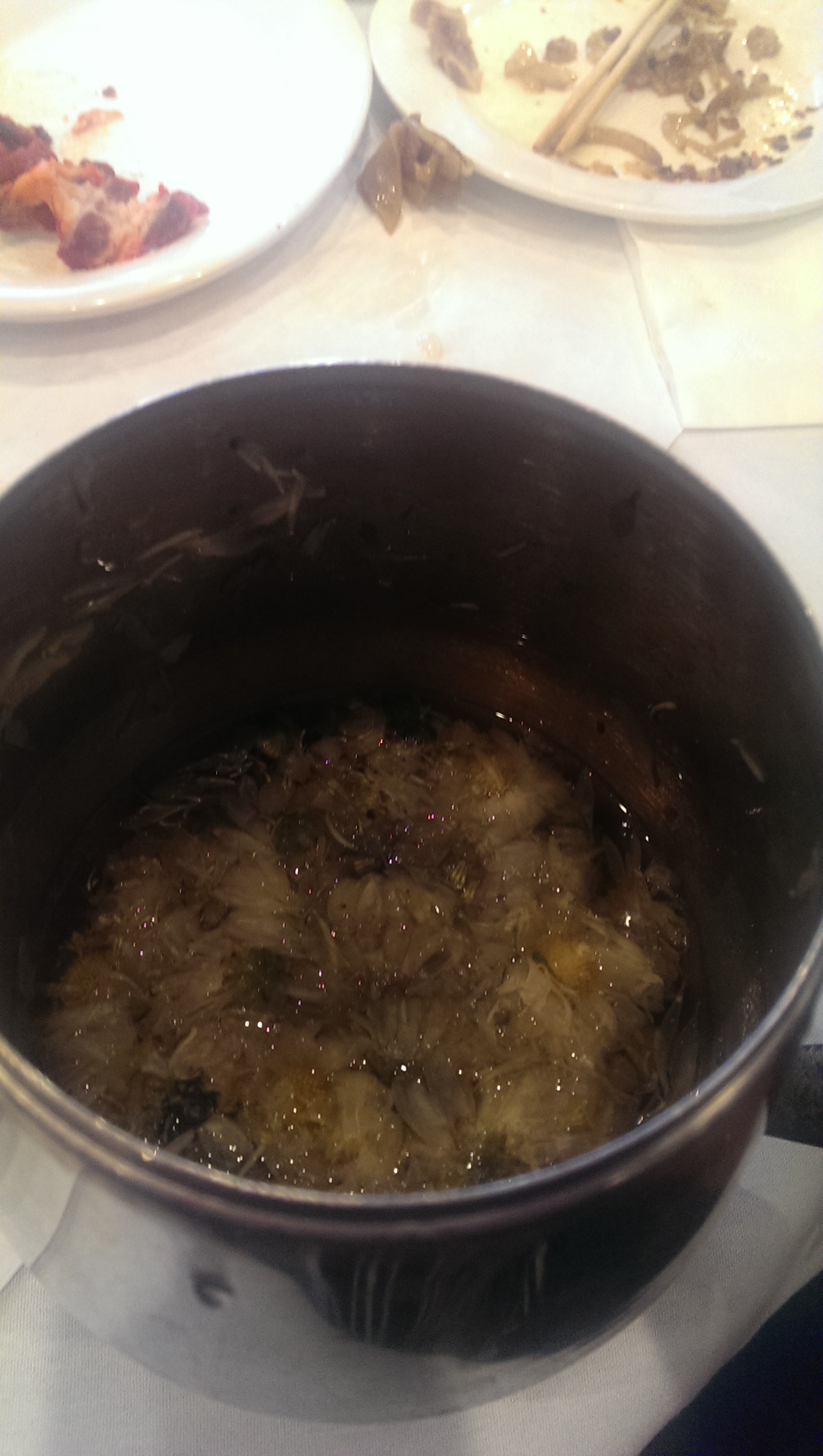 Food service was quick as the carts came around, but our poor vegetarian friends who ordered off the menu finally got their food almost when we were finished. And we had to remind the waiter that I had also ordered pea shoots with garlic. The dumplings were good, and we had a ton of them, ranging from Sue My (aka shu mei), Fun Goa (steamed dumpling with chopped veggie, shrimp and pork), a dumpling with scallions and some kind of meat, xiao lao (soup buns but they had sat too long and the soup had escaped from them – they still tasted good though and was the favorite dumpling for most of us) and Sin Joe Gin (fried tofu skin stuffed with sausage). We had two buns – 4 Sue Bough (baked BBQ pork buns) and 4 Guy Me Bough (a bun with coconut). I cut them up into four pieces each so we could all try them. We also ordered one sticky rice in a lotus leaf, which I normally love, but I was really disappointed with it here. Despite being packed with various meats it lacked profundity and most of all flavor. The pea shoots and garlic was delicious, and it came with a side of rice. Our bill came to $60.75, which broke down to $10.50 a person including tax and tip.