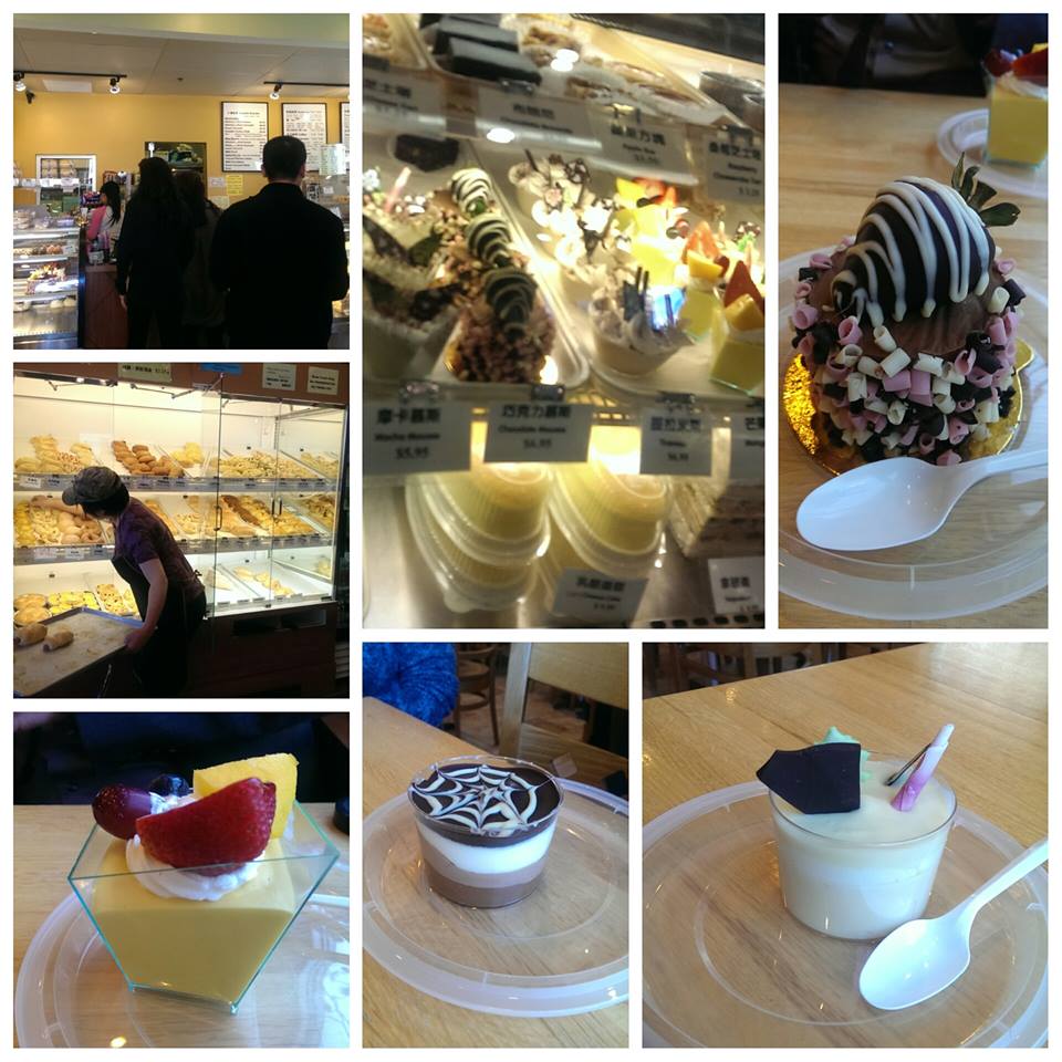 Five of my friends continued with other plans, while four of us decided to stop at Koko Bakery. My vegetarian friend had left after Emperor’s Palace last week and lamented having missed the desserts, so I wanted to make it up to her. I thought about ordering a smoothie, but decided to order a Taiwanese shaved ice ($5.35 including tax) instead. One of my friends thought it sounded good and ordered the same thing I did. They shave the ice, top it with three toppings (I ordered lychee, mango and kiwi), and pour condensed milk over it. It was very refreshing on this 78 degree day. I also felt I was getting some vitamins to balance out the dumpling overload. My vegetarian friends split the mango cheesecake, which I had a bite of and really liked.