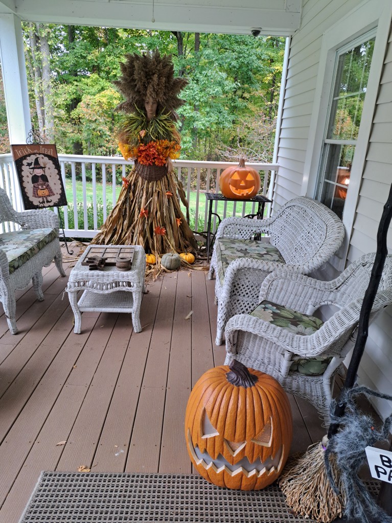 We enjoy sitting on the front porch before and/or after event just catching up. Joe even turned on the ceiling fans for us last summer. It’s especially fun when it is decorated for Halloween, with a spooky pumpkin offering some ambiance.